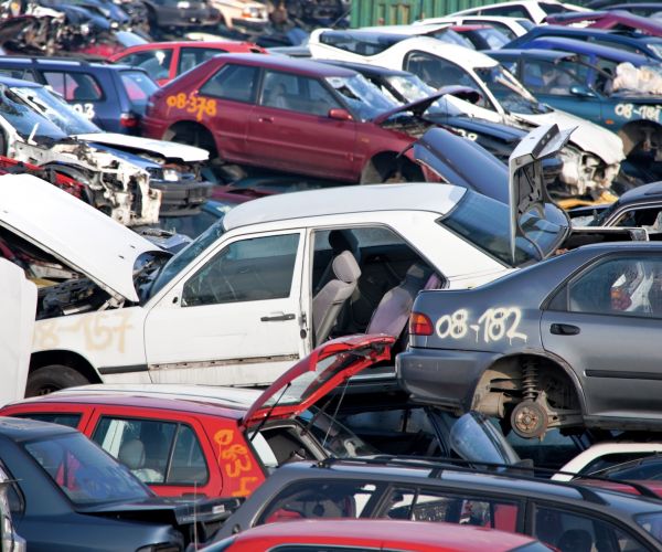Mit geringen technischen Mitteln wurden schrottreife Fahrzeuge ausgeschlachtet und die gebrauchten Ersatzteile
